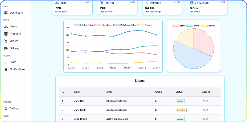 Admin dashboard